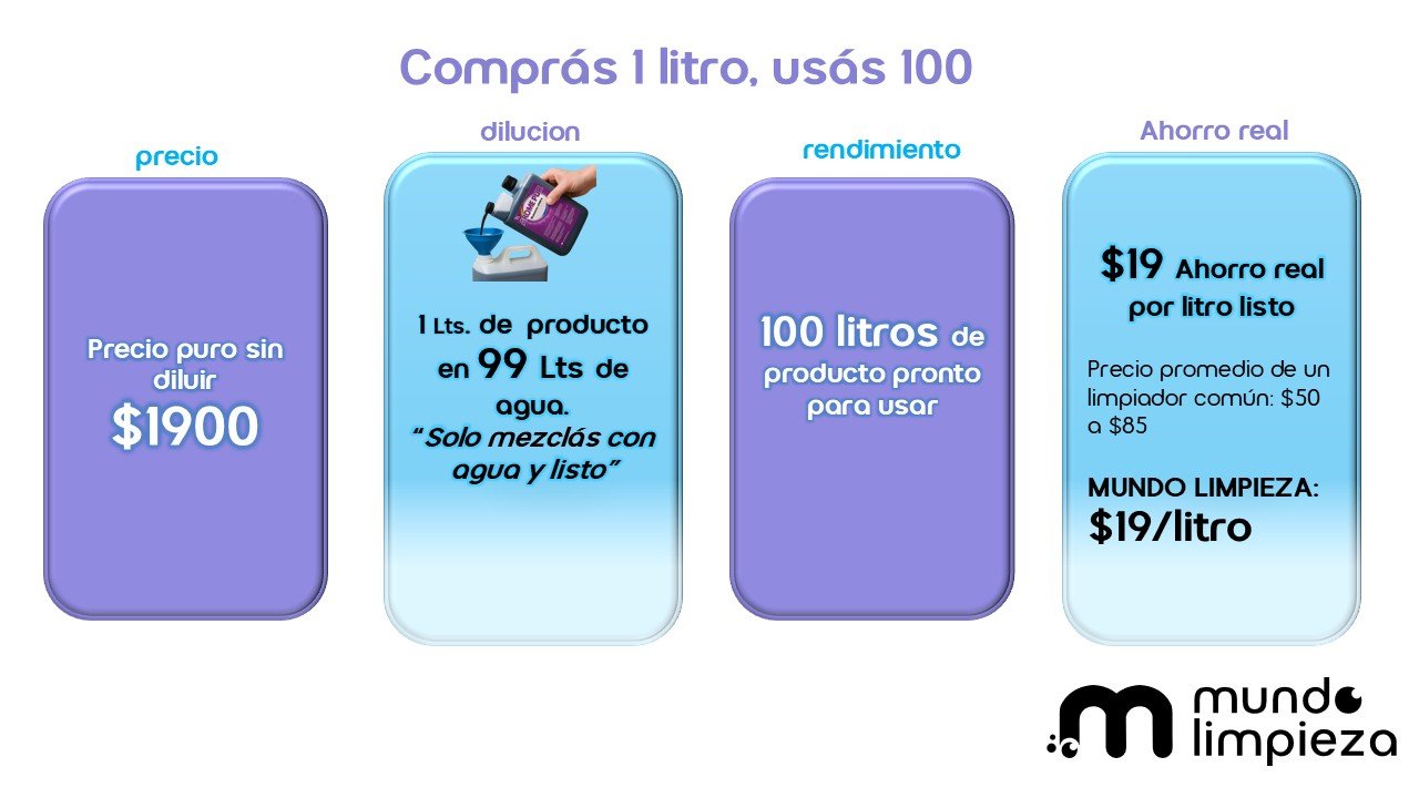 Potencia profesional en cada gota. Nuestro limpiador aromatizante súper concentrado está diseñado para brindar una limpieza profunda, efectiva y un aroma envolvente y duradero en todo tipo de superficies lavables. Su fórmula de alto rendimiento rinde hasta 100 litros de solución lista para usar con solo un litro de producto, ofreciendo una excelente relación costo-beneficio.
